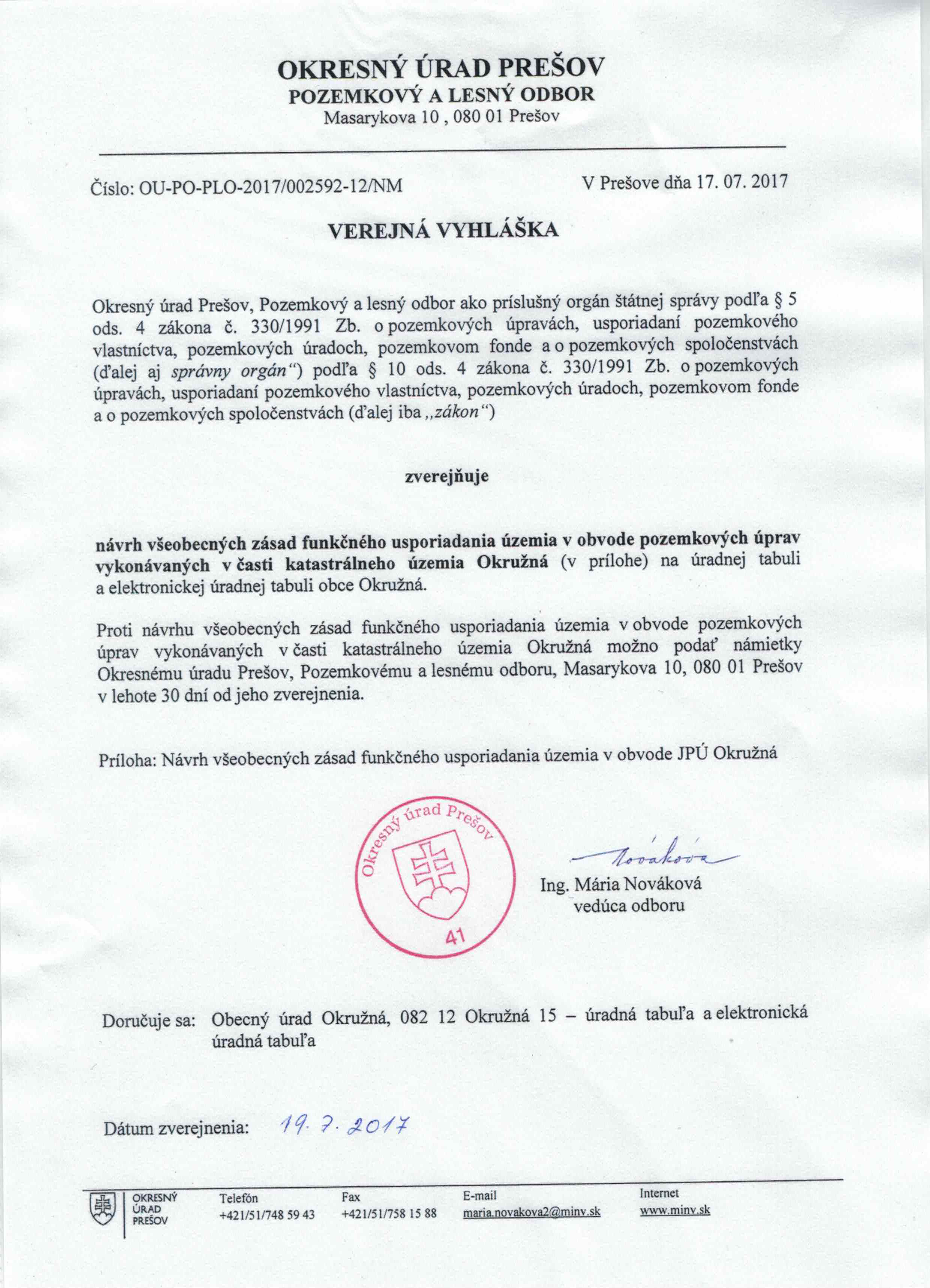 OU Prešov-Pozemkový a lesný odbor - Oznámenie o zverejnení rozdeľovacieho plánu projektu JPÚ .pdf